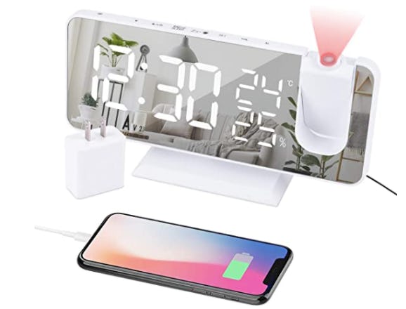 Check the time without having to roll over when you have this projection alarm clock on your nightstand. The 16-foot projection range delivers clear reading, while the 180-degree swivel supports a range of projection positions. Choose your favorite alarm tone and feel free to hit the snooze button for some extra rest. And that’s not all: This clock can also give you humidity readings and the main face doubles as a mirror during the daytime. Talk about a versatile gift!