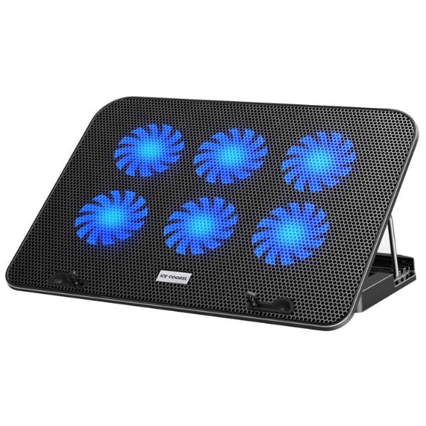 Cool off your computer so it works at optimal speeds with this handy cooling stand. Six fans deliver even impact across your laptop’s base. Adjust the stand for comfortable eye-level viewing. This simple solution works with laptops up to 15.6 inches, with raised edges for secure placement.