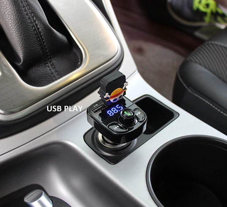 Make and take calls while charging your device with this wireless Bluetooth FM transmitter. Bluetooth compatibility lets you listen to your playlist even if your car isn’t compatible, and a built-in FM receiver scrolls through your favorite stations. This compact charger works with both Android and Apple devices.