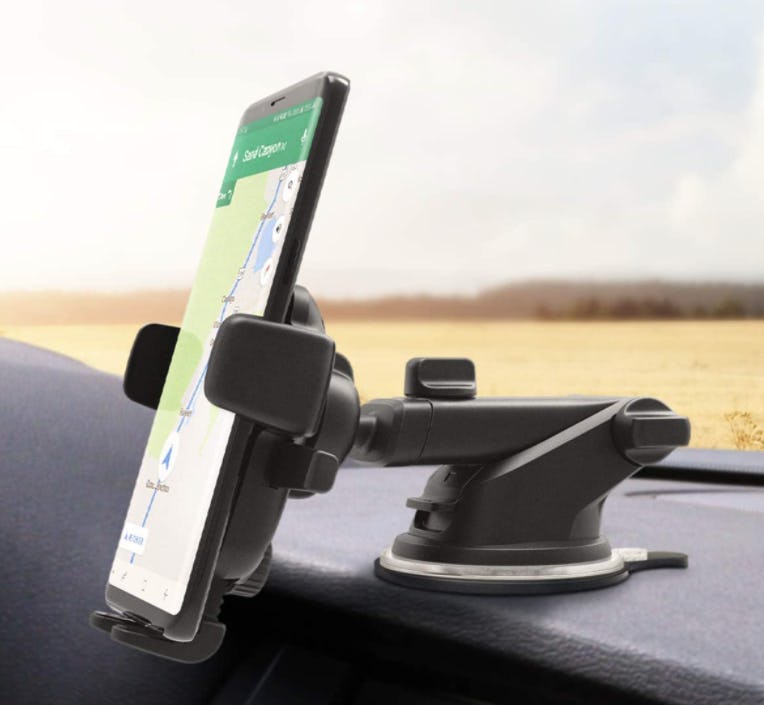 Provide a stable, secure spot for your smartphone as you drive with this adjustable car mount. It’s universal by design — so it fits most phones — and the one-touch release makes it easy to grab your device. The strong suction cup base holds tightly to your dash, keeping your phone from tumbling over bumps and around bends.