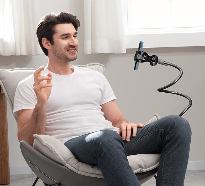 7. This gooseneck phone mount that clamps on to your chair, bed, or desk