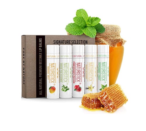 Soothe dry, cracked lips with this set of five lip balms made from natural ingredients, like beeswax, and deeply hydrating sunflower seed and coconut oils. The cruelty- and paraben-free balms are flavored, too: green tea, peppermint, mango, vanilla, and pomegranate.