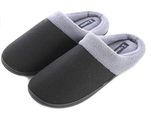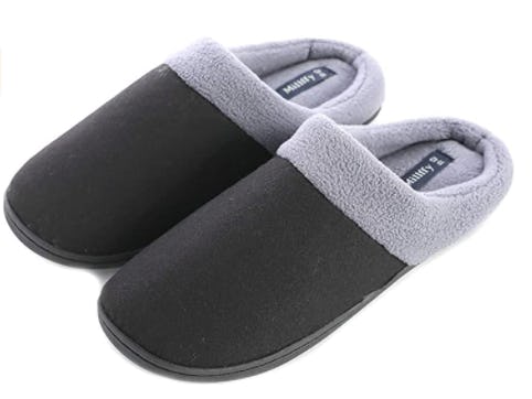 Designed with a plush fleece lining and high-density memory foam insoles, these unisex slippers offer fantastic warmth and comfort. They also have anti-slip rubber soles, so you can step out to get the mail while wearing them, and they come in three neutral shades: camel, gray, and two-tone gray and black.