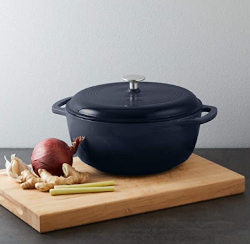 If there's one thing this year has taught us, it's that everyone needs a cast iron Dutch oven. This one won't put a dent your wallet, and it can be used on the stove or in the oven (up to 400 degrees Fahrenheit). Available in three sizes and eight colors, it features a non-stick interior and a durable enamel finish. Use it for risottos, roasts, sourdough bread, and more.