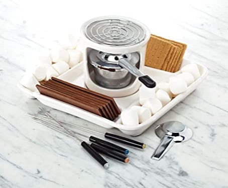 If you're looking for a little nostalgia while you hunker down at home, break out this ceramic s'mores maker. Just pop in a can of chafing fuel (sold separately), and you’re ready to roast marshmallows inside without having to build a fire. Plus, it comes with an elegant tray and four roasting forks.