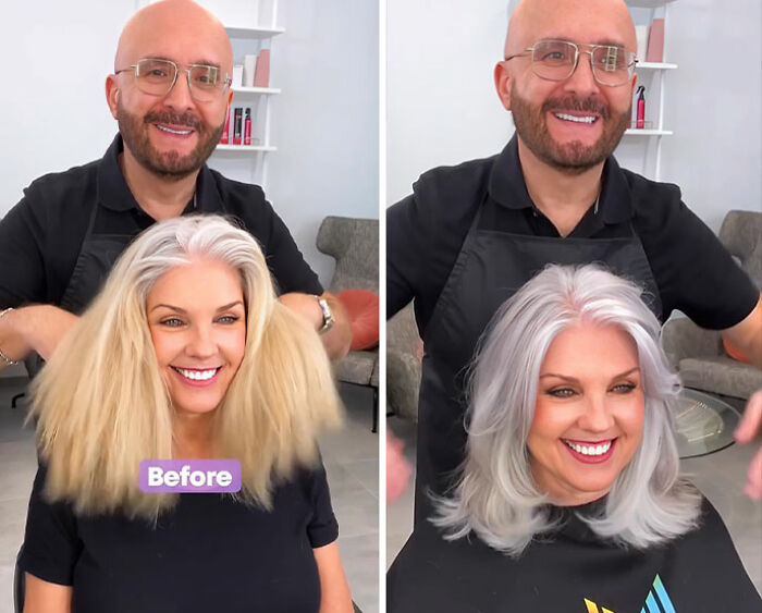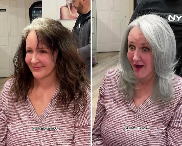 "It’s not about 'giving up' on your hair," van Vollenhoven told Bored Panda during an interview. "It’s about letting your authentic beauty shine through. The key is to work with the texture and tone of your gray hair rather than against it. A good haircut and the right products can make all the difference in feeling confident and stylish."