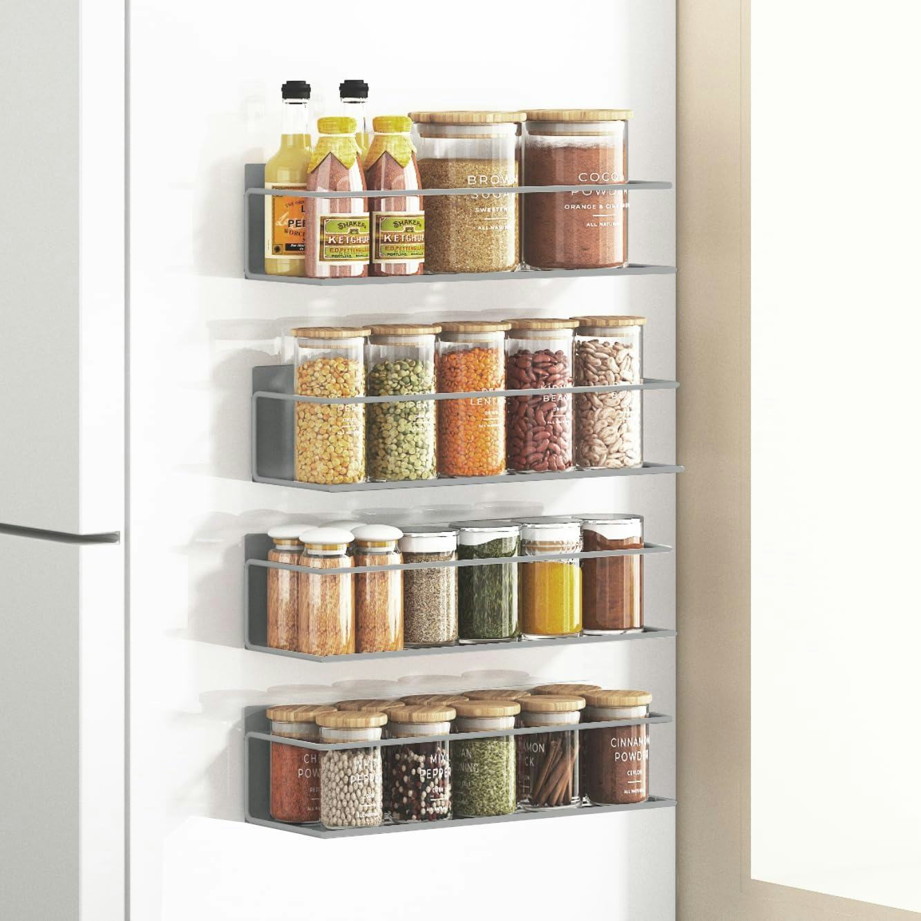 Heavy-duty spice racks that magnetize to your fridge