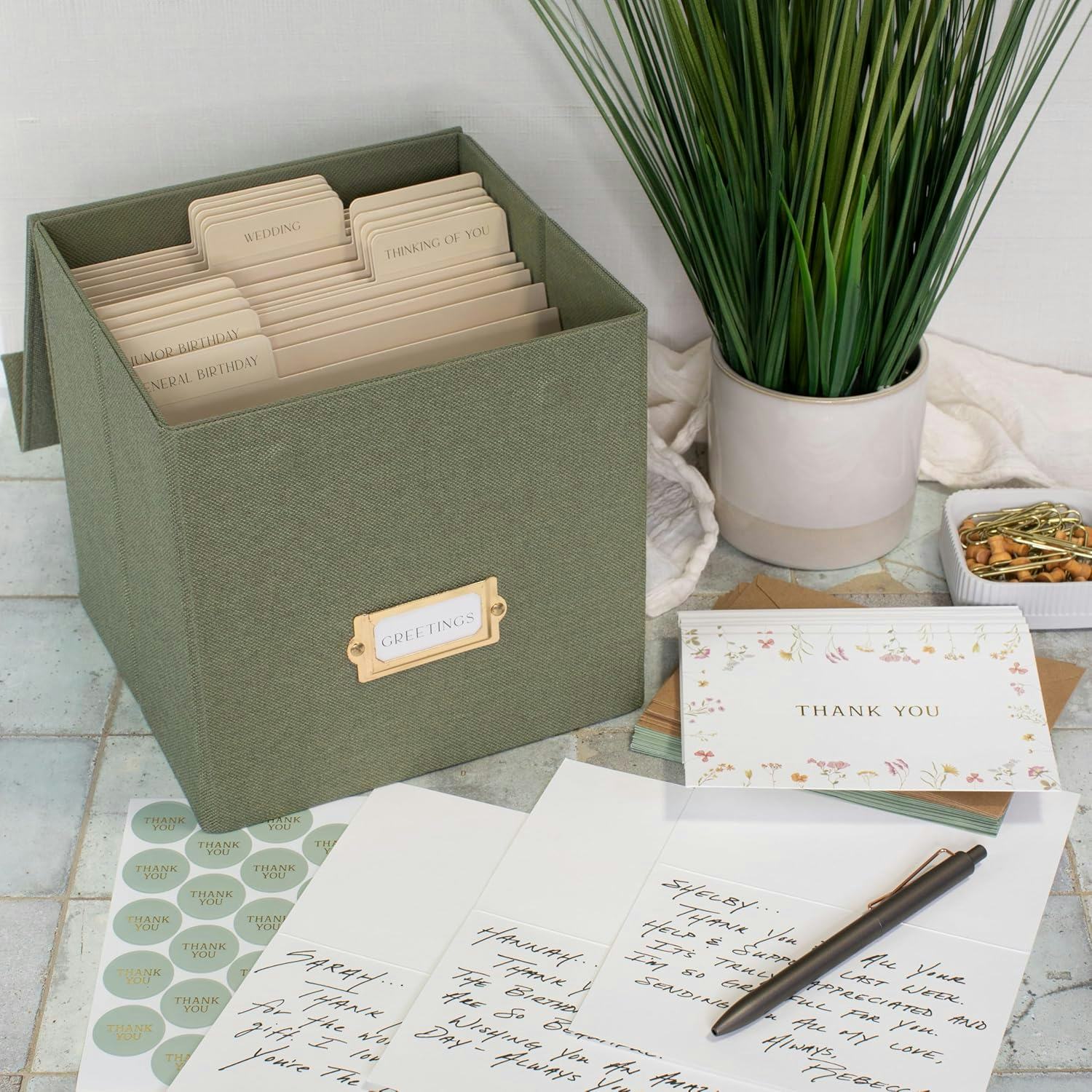 This greeting card organizer box makes it easy to store and organize up to 300 greeting cards. That means birthdays, holidays, and thank-you notes are always ready to go. Built-in dividers help you sort cards, and stickers make finding the right card a total breeze. One shopper wrote, “Love this greeting card organizer! Aesthetically beautiful, it includes sticker labels and a magnetic clasp. Highly recommend!”