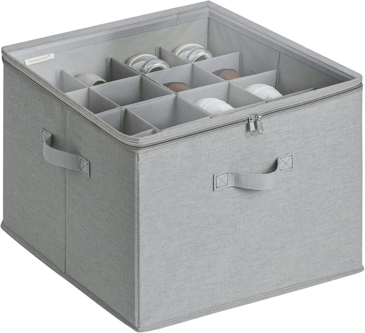 This shoe organizer is practical, handy, and customizable. The dividers are actually attached to the sides, so you can flip and adjust them to fit everything from chunky sneakers to slim sandals without your shoes sliding around. It’s like a cubby system that adapts to your collection instead of forcing you to cram things in. The clear lid keeps dust out, and the reinforced handles make it super easy to grab, too.