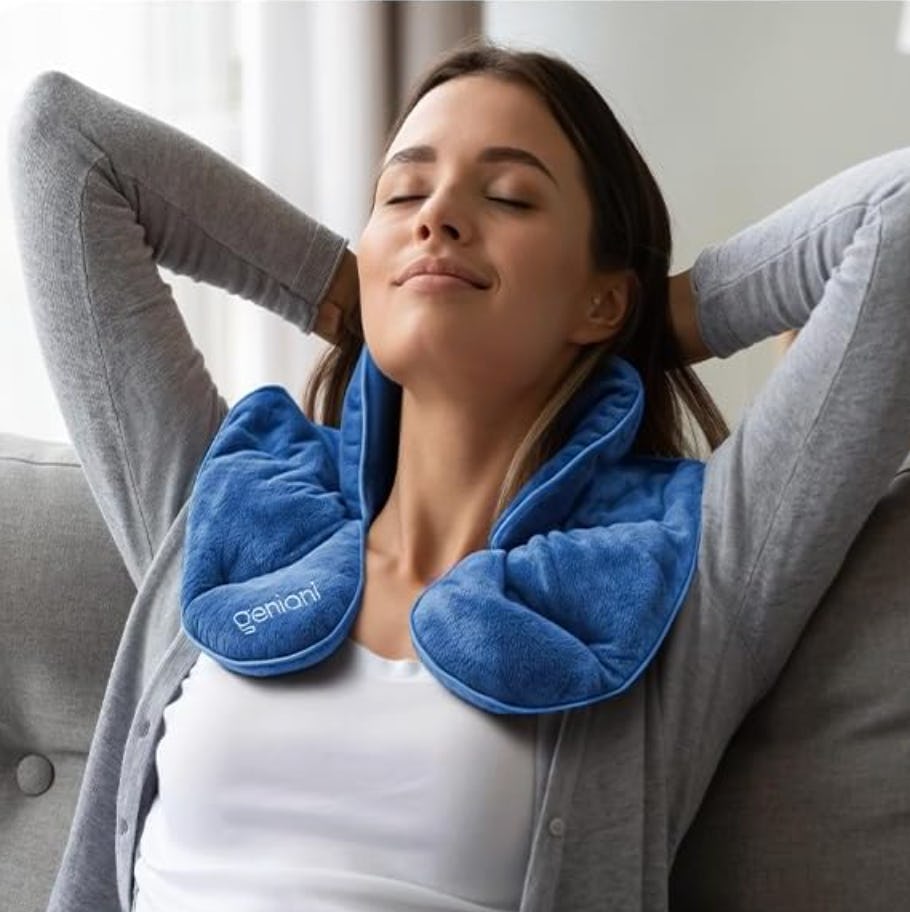 GENIANI Microwavable Heating Pad for Neck and Shoulders with Herbal Aromatherapy - Calming Weighted Cordless Neck Wrap - Heat Pad for Pain Relief - Microwave Heating Pad, Gifts for her (Space Blue)