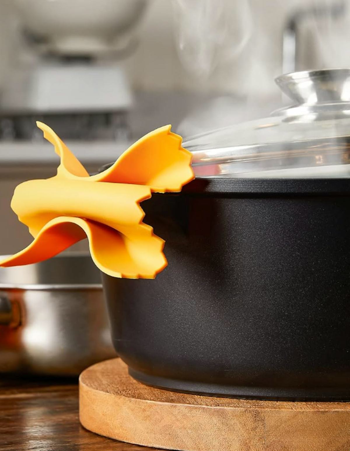Prevent accidental burns in the kitchen with this pair of farfalloni-shaped pot holders. They are crafted from food-grade silicone that’s heat-resistant, BPA-free, and dishwasher-safe. Scoring an overall 4.6 stars, reviewers comment on the pasta-themed pot holders’ whimsical design and great functionality, noting that they work well on Dutch ovens and stay put on handles.