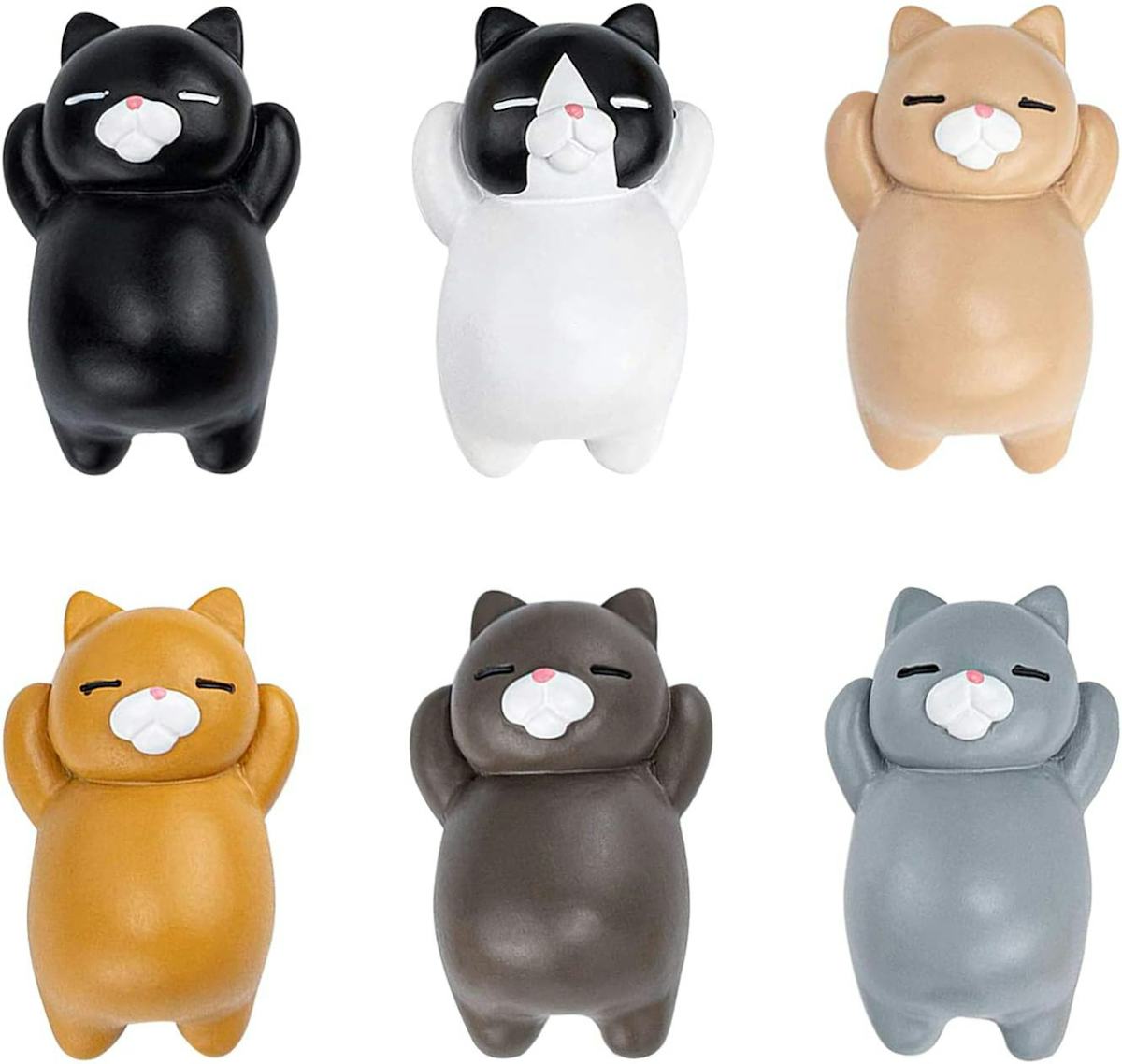 A set of 6 resin cat fridge magnets strong enough to hold 8 sheets of paper