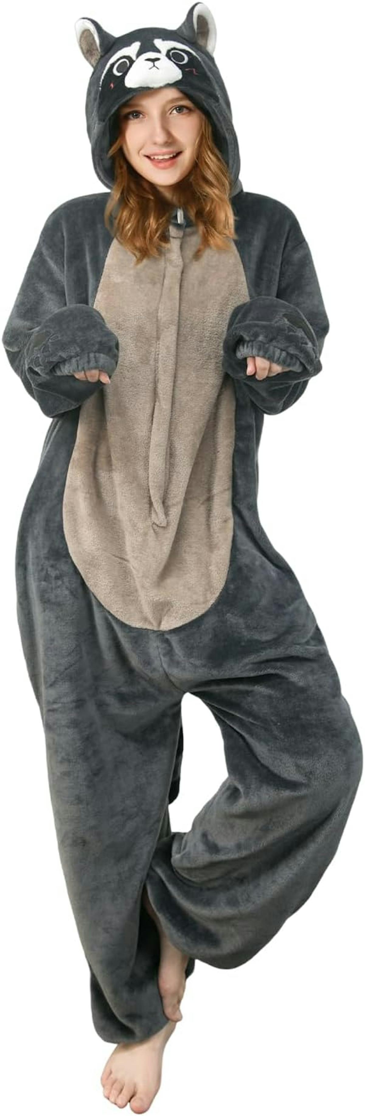 Whether you’re going to a dress-up party or want something cozy to lounge around in, this animal onesie fits the bill. It’s made of machine-washable flannel material, has a comfy loose fit, and even has two soft side pockets. The hood features adorable animal face details, while the sleeves are decorated with paw prints and the back with a long sewn-in tail. As for the zipper, it’s discreetly hidden on the back.