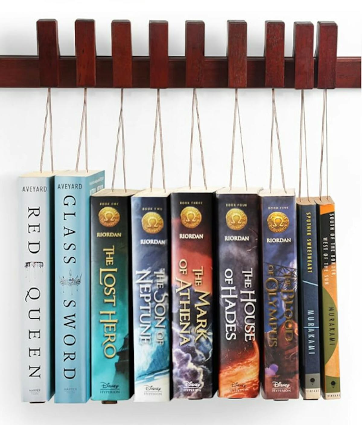 For a unique way to display your favorite reads, mount this 28-inch floating bookshelf on your wall. It’s made of solid rubberwood and includes 14 movable pins that allow you to display books of various sizes with either the cover or the spine facing out. The minimalist shelf is an excellent option for tight spaces, and the purchase includes mounting hardware for quick and easy installation.