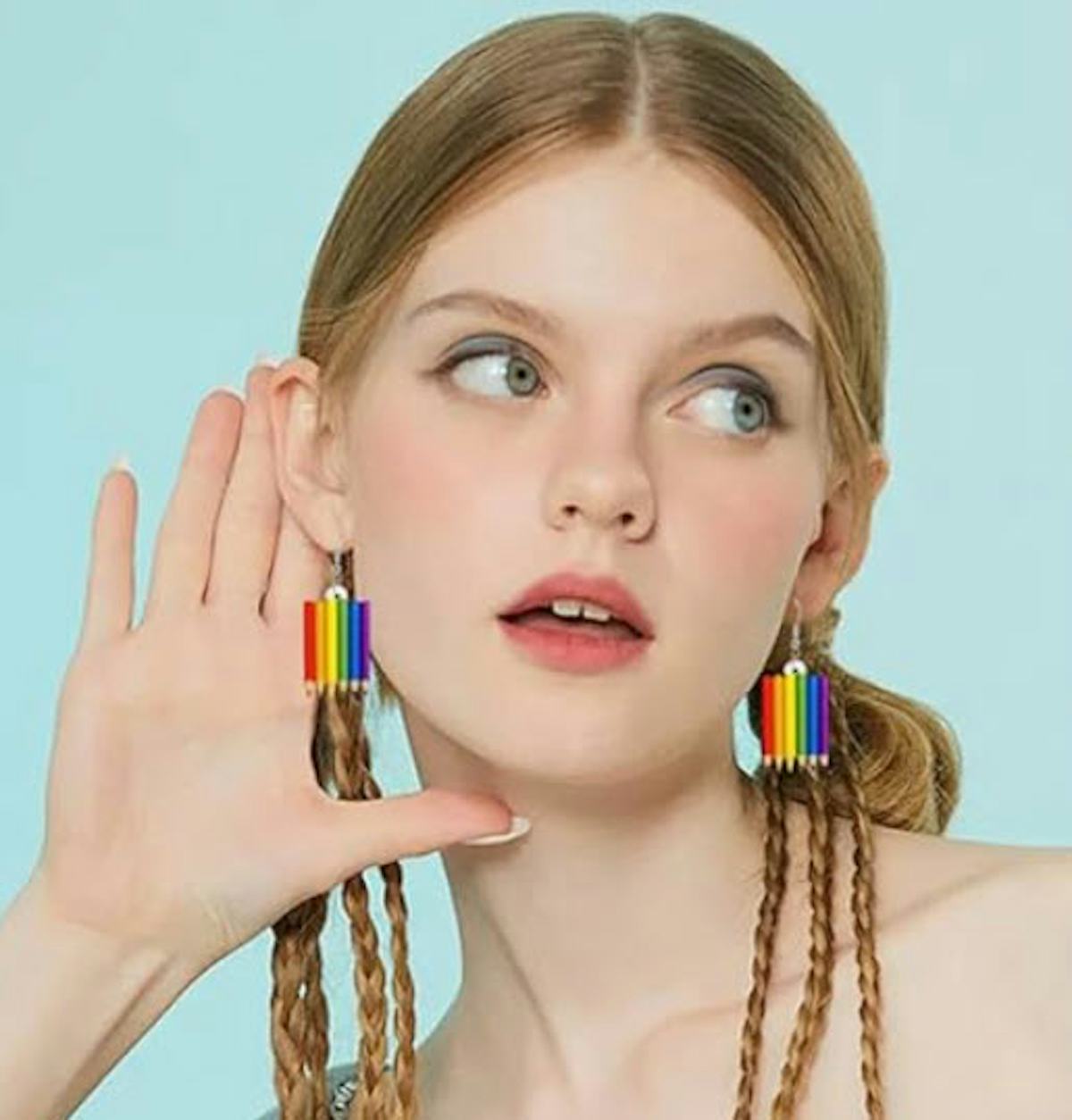 This pair of dangling earrings has a fun rainbow-colored pencil theme that adds a playful finishing touch to any outfit. The decorative pencil portion is made of high-quality acrylic, while the hooks and French wire backs. While the colored pencils offer a quirky and playful vibe, you can also get them in ice cream cones, game controllers, and more fun shapes.