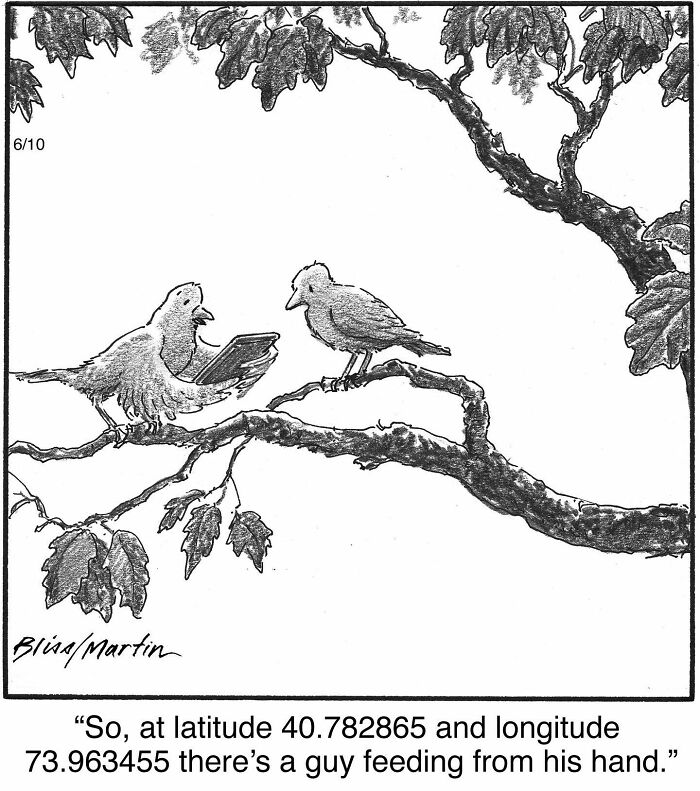 Bored Panda reached out to Harry Bliss again to learn more about his work. His cartoons often show the special bond between dogs and humans, but he also covers other topics that make us smile. We asked him how he chooses the themes for his cartoons and what current events or trends inspire him. Harry shared that he usually doesn't focus on current events or trends. "I’m not particularly interested in commenting on these things; there are plenty of other cartoonists who do it much better than I can. My cartoons are quite autobiographical, with lots of dogs, trees, nature, and the occasional human. I’m all about nature. I draw what I love…trees!"