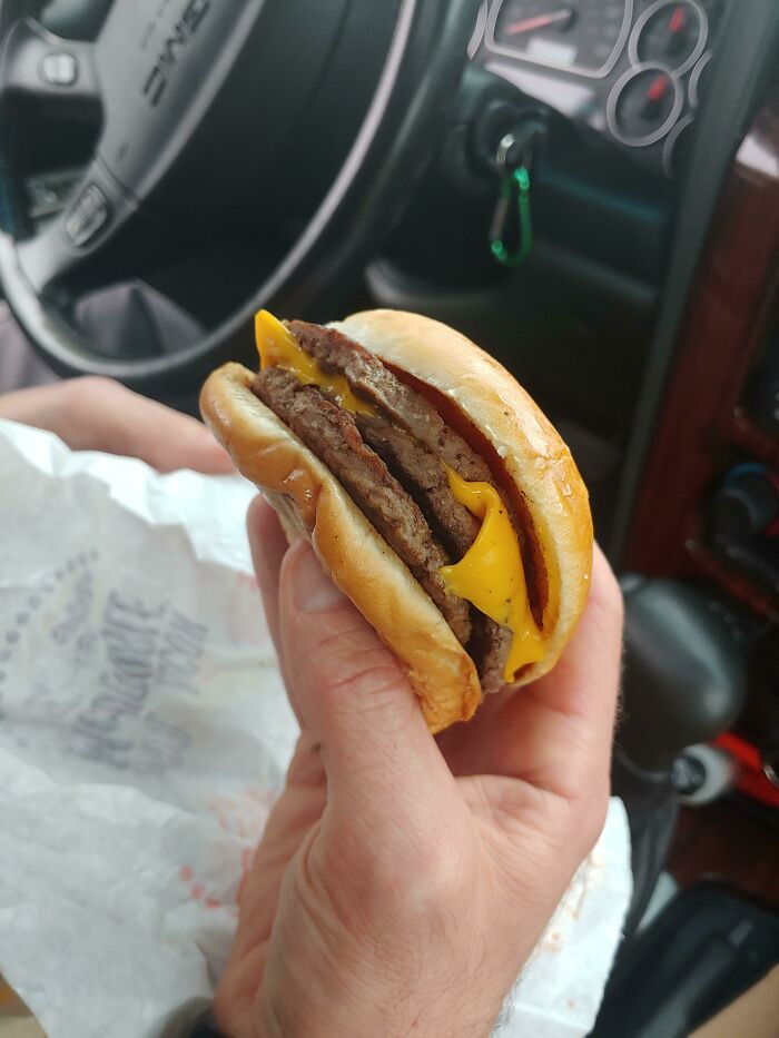 Depending on where you live, Wendy's might give a free single-patty burger with any purchase or $2 off a burger for taking their survey. I used to order sliced jalapeños (29¢) and put them on my free burger.