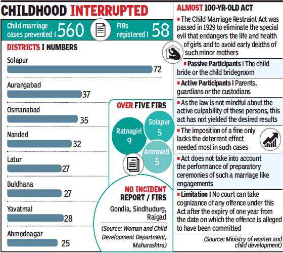 PUNE: As many as 560 child marriages have been thwarted by the women and child development department and the state police in drought-prone Solapur, Osmanabad, Latur and some other districts during the lockdown period from March 2020 to April 2021.