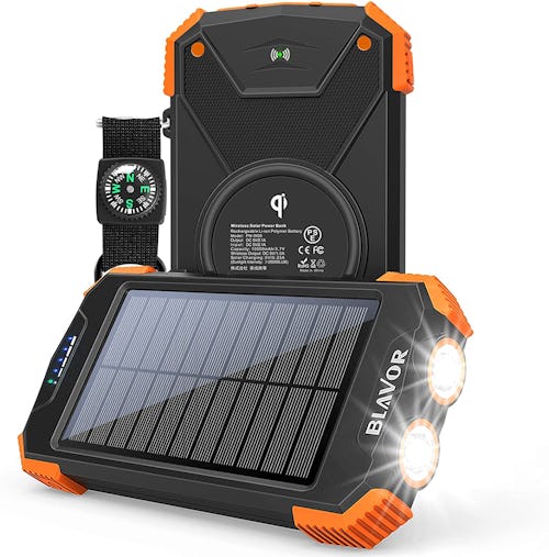 The next time you're heading on a road trip or hike, bring this 10,000 mAH solar power bank to charge up your devices when you don't have access to an outlet. It's compatible with a wide variety of Apple and Android devices and, between the wireless charging pad and two USB ports, it can charge up to three devices at once. It features a solar panel on one side, and it has a built-in dual LED flashlight and compass.