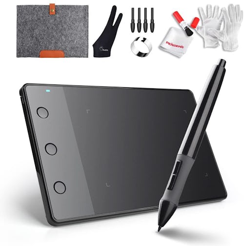 If you're looking to dip your toes into the world of drawing tablets, this budget-friendly HUION kit seems like a great option. The board features three express keys and the pen offers 2,048 levels of pressure. It's compatible with both Windows and Mac devices, as well as a wide range of applications, including Photoshop and CorelDraw. Plus, it doesn't require an external driver.