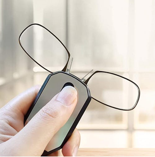 You'll never lose track of your reading glasses with this nifty little product. At first glance, it looks like a key fob, but a pair of glasses pop out at the touch of a button. They have a bendable bridge that can withstand being folded up to 4,000 times and are constructed to fit different nose shapes. They come in four magnification strengths and several frame colors.