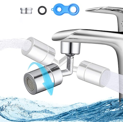 Attach this faucet aerator to your bathroom or kitchen sink to better control the flow of the water. It can rotate in every direction, including upwards, and offers two flow pressures (bubble stream and strong sprayer) to make it easier to wash your face, rinse your teeth, or just grab a quick sip of water.