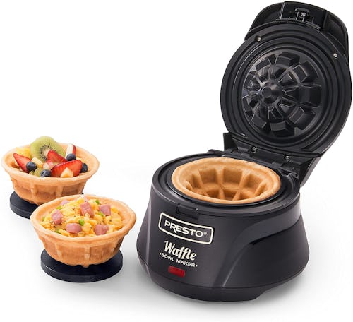 Elevate your breakfast menu with the Presto waffle bowl maker, which can churn out bowl-shaped waffles. Use your favorite batter recipe, then fill your 4-inch bowl with everything ranging from sweet fruit to savory meat. Feel free to experiment — because, really, what wouldn't taste good in a waffle bowl?