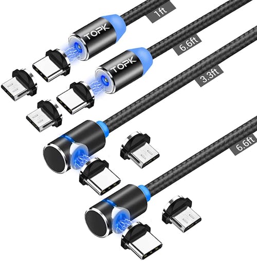 There are a couple things that make this set of charging cables cooler than a standard cord: one is that they each have a magnetic head to help keep them in place, and the other is that they light up when they're plugged in. Plus, they support fast-charging and can be used to transfer data.
