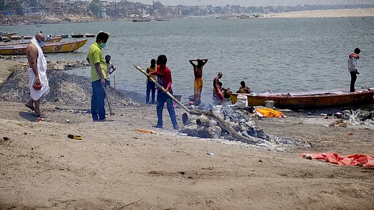 हरिश्चंद्र घाट पर एक बिजली से काम करने वाला शवदाह गृह बना हुआ है. लेकिन कोविड लाशों की बढ़ती संख्या के चलते लाशों को जलाना भी शुरू किया गया. मोहन ने बताया, “शुरू में गंगापुर से एक लाश आई थी. किसी ने नहीं बताया था कि ये कोविड संक्रमित लाश है. लेकिन जब पता चला तब उसे कोई नहीं छू रहा था. समय के साथ लाशें बढ़ने लगीं. सभी को इलेक्ट्रिक शवदाह गृह में नहीं जलाया जा सकता था. इसलिए लोग कोविड संक्रमित शव को घाट पर ही जलाने लगे,"