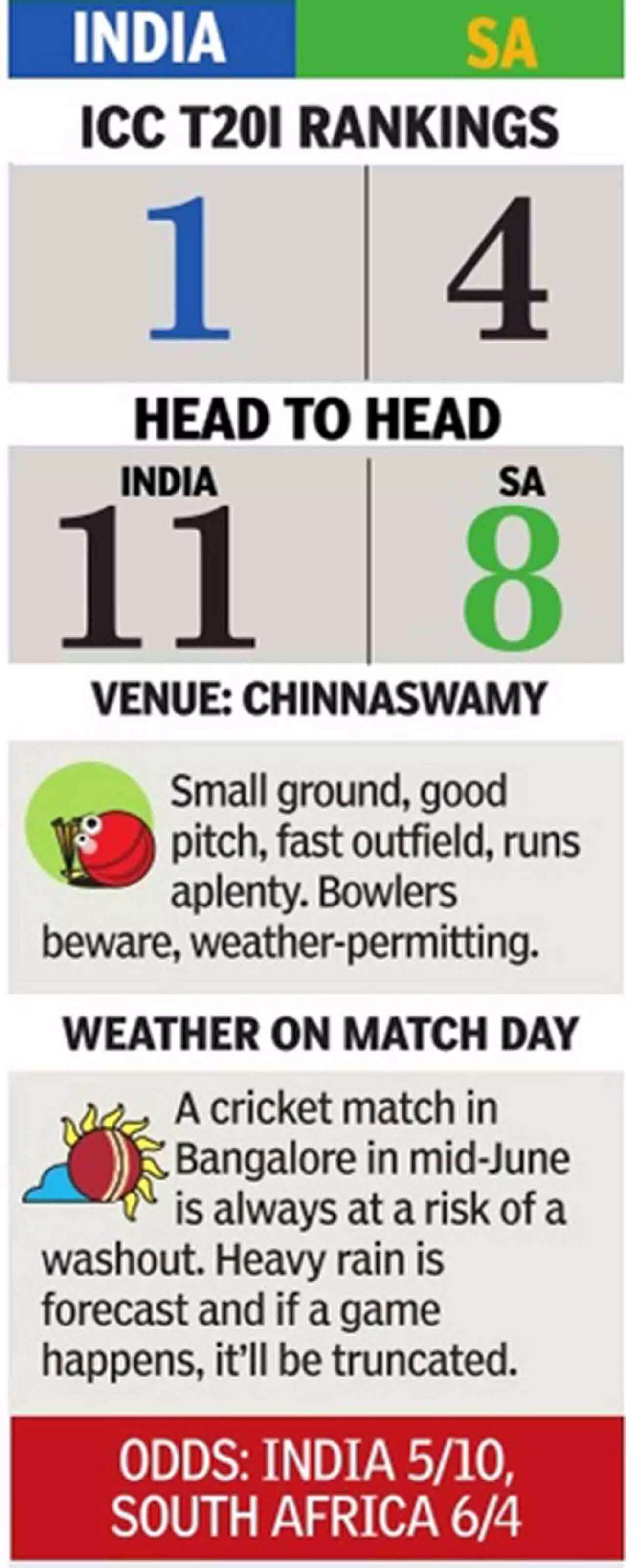 While the series is interestingly poised, and on paper a cracker of a contest is expected, nature will have to be kind for a full contest. Bengaluru has been under the monsoon cloud cover over the past few days with rain being the order in the evenings. In fact, heavy showers greeted the two teams on arrival here on Saturday.