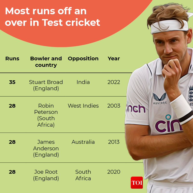 Broad ended up giving away 35 runs in that over after adding the extras.
