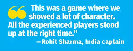 Even with the dew setting in heavily, the spinners were not easy to get away. India too had lost a flurry of early wickets when they batted, but the perspicacity of Rohit Sharma (87 off 101 balls; 10x4, 3x6) and his sheer skill with the bat saved the day.