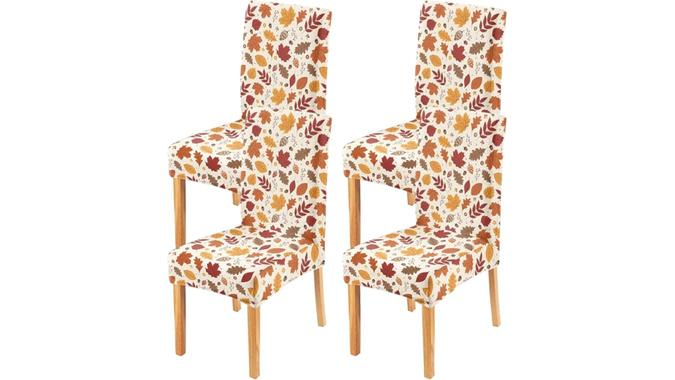 Retirees can add a festive touch to dining chairs with these attractive slipcovers made to stretch two ways with spandex and polyester. The Thanksgiving chair slipcovers also will protect dining chairs from spills during visits with family and friends this holiday season.