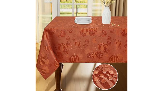 The waterproof damask table cloth is a great start to decorating the dining table for the fall season. It’s a beautiful jacquard damask design with pumpkins and leaves and is machine washable. Retirees will be prepared for spills with this waterproof-coated tablecloth when hosting Thanksgiving brunch, lunch or dinner.