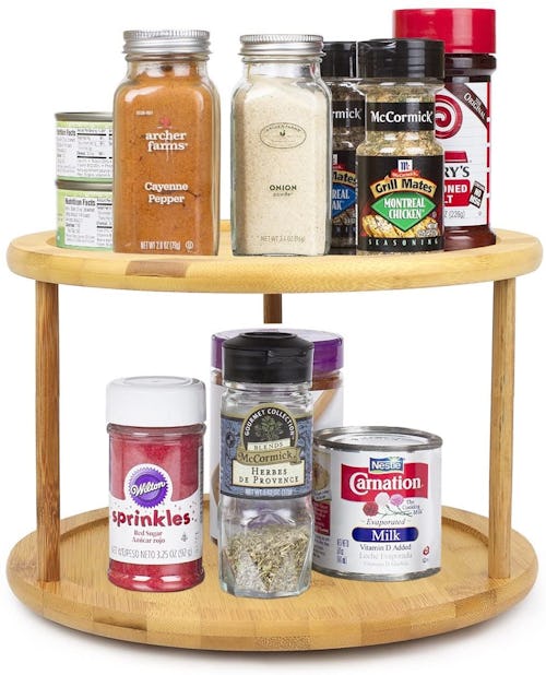 Instead of hiding this highly rated lazy Susan away in your cabinet, its bamboo material may inspire you to put it out on display. It rotates 360 degrees so you can quickly get to the spice you need as your soup is boiling or so you can put out appetizers and let everyone around the table reach them easily.
