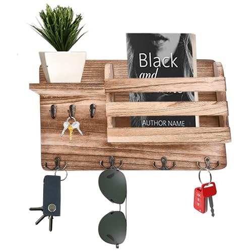 Hallops Wooden Key Holder Wall Mount- 12.9"x3.9"x7.8" - Hanging Mail Sorter and Key Rack for Entryway - Hallway Hanger Shelf with Coat Hooks - Decorative Organizer Rack - Mail Holder for Wall