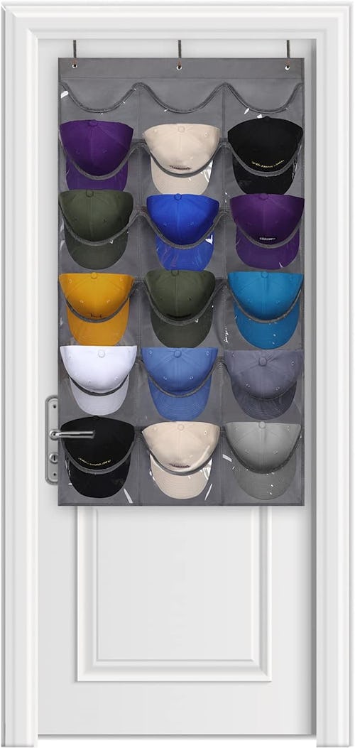 No tools are needed to hang this hat rack over your door to store at least 18 of your favorites. The pockets ensure the cap’s shapes are maintained and they won’t be crushed like they might in a pile.