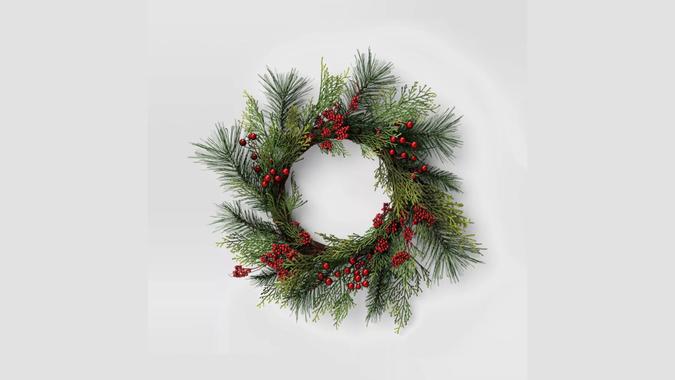 Wondershop 22-Inch Mixed Pine With Red Berries Artificial Christmas Wreath