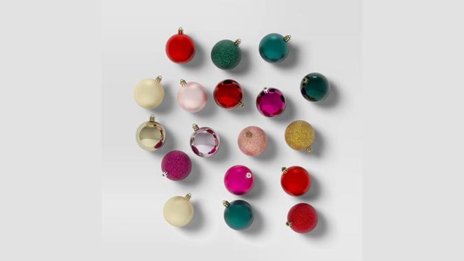 Available in a variety of color combinations, this Christmas tree ornament set is a steal.