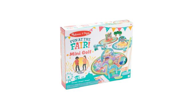 This Melissa and Doug mini golf set is a fair-themed customizable three-hole course (for two players) with 27 pieces, including three activity rugs. Grandchildren can learn how to play golf while using their imagination. Buy two of these mini golf sets to extend play from two to four children.