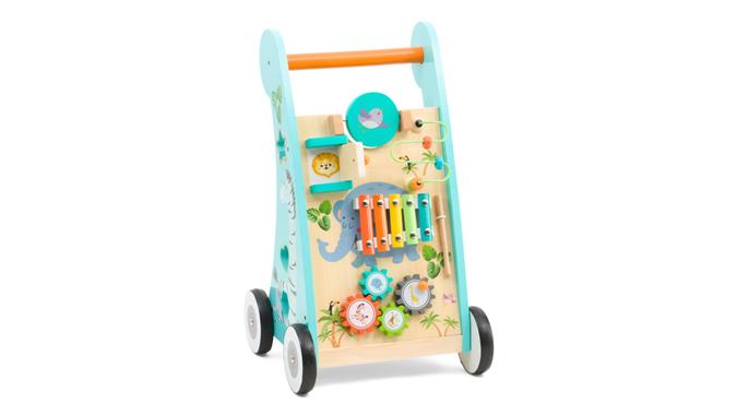 TEAMSON’s wooden baby walker is a great way for young grandchildren to engage in learning activities while on the move. The walker’s handle helps with the child’s balance while they keep busy with a shape slider, shape sorter, spinning gears, a bead maze and a xylophone.