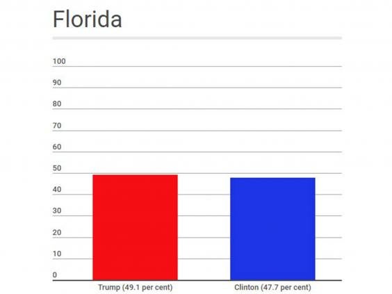 As results came in for key swing state Florida early on, the very real prospect of a Trump success became apparent. He beat Clinton by a tiny margin of 2.4 per cent, aided by a split of the left-wing vote which saw a crucial 3.1 per cent of votes go to liberal candidate Gary Johnson. History may remember the moment Clinton lost Florida as the moment she lost.