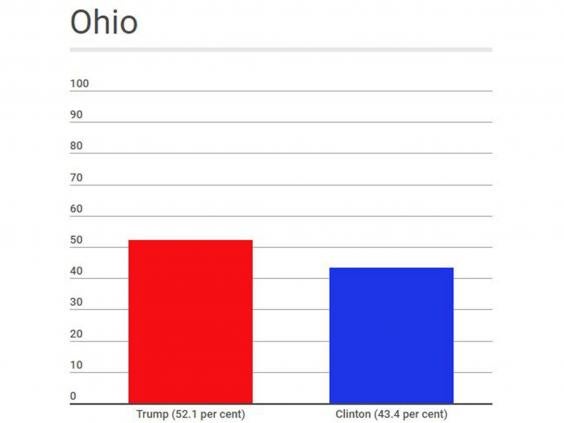 Another key state for Trump to win was Ohio. Demographics for the state are in his favour, with the local population being whiter and less education on average than the rest of the country. The state previously supported Obama by 48 per cent, but his Democratic successor Clinton failed to win voters’ support. Trump beat Clinton by a country mile, gaining close to a 10-point lead.