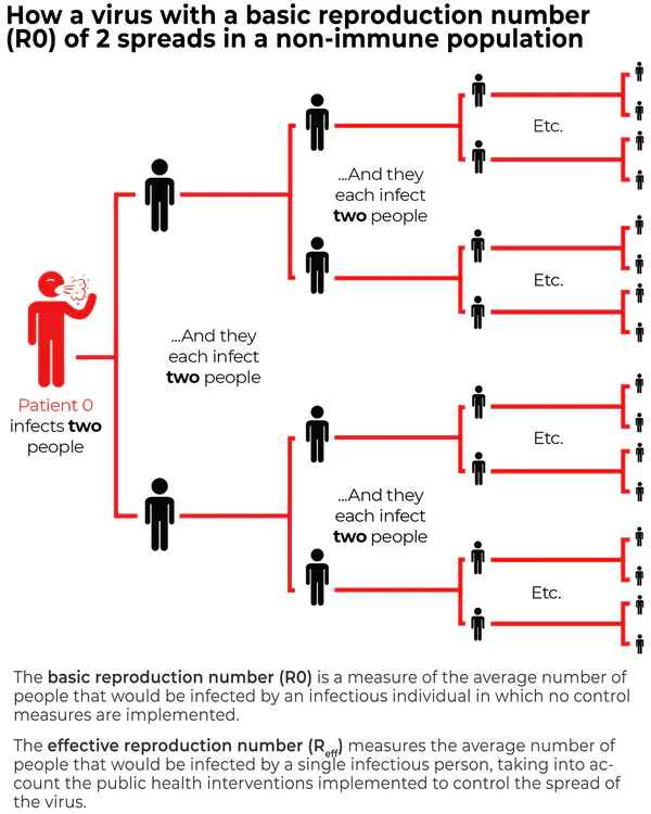 A Reff of less than 1 means each infected person spreads the virus to less than one other person, on average. By keeping Reff below 1, the number of new infections will fall and the virus will ultimately disappear from the community.
