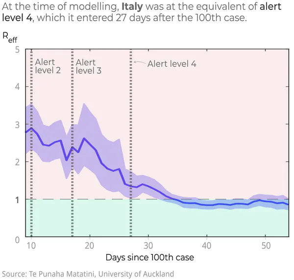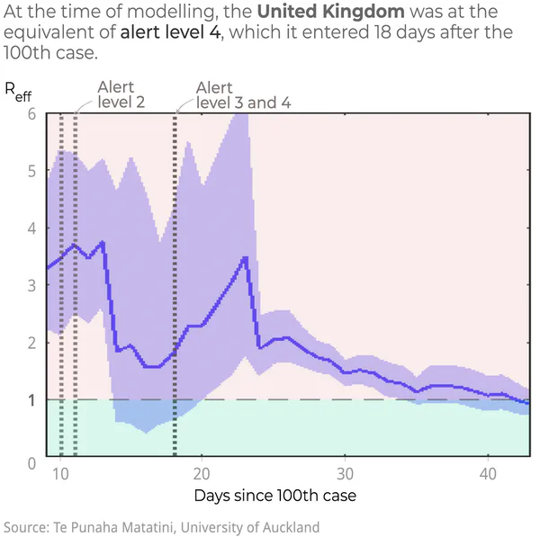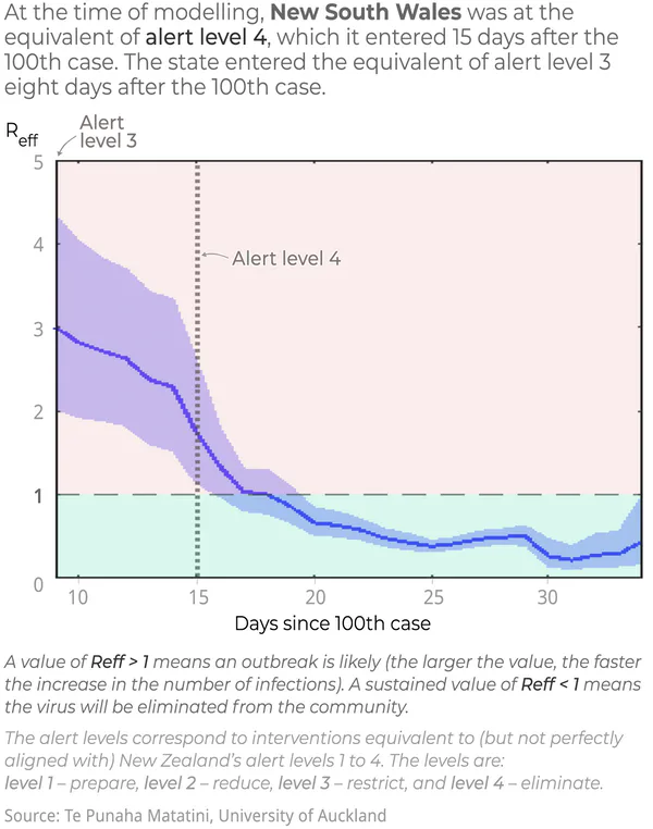 By mapping the change in the effective reproduction number (Reff, an indicator of the actual spread of the virus in the community) against response measures, the research shows countries that implemented level 3 and 4 restrictions sooner had greater success in pushing Reff to below 1.