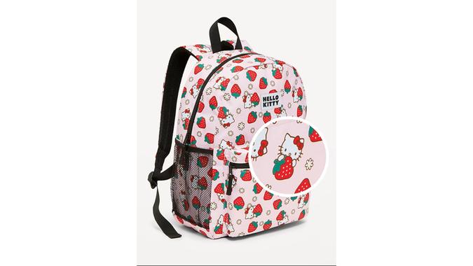 Pick up this Hello Kitty Lunch Bag while at Old Navy to go with the backpack. It has the same cutesy design with vibrant strawberries and the much-loved character on all sides. The two-way zip-top closure is easy to use, while the foam-insulated PEVA-lined interior makes it perfect for keeping food cold.