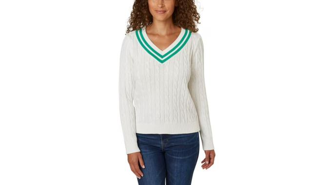 Lands’ End Women’s V-Neck Cable Sweater: Timeless Style Under $20