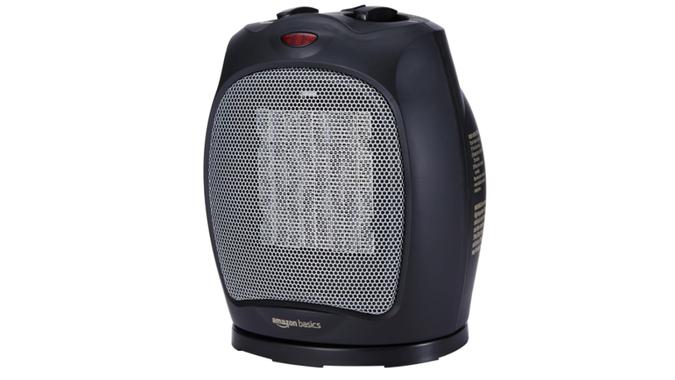 Cooler days might already have arrived in your neck of the woods. Warm up your home with an Amazon Basics oscillating black space heater.