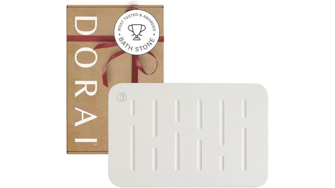 Boomers will appreciate the Dorai bath stone mat with its nonslip rubberized bottom to ensure safety when getting in and out of the tub or shower. It’s made from diatomaceous earth and recycled paper and has a ceramic-like material that feels like natural stone, which allows the mat to hold up to 150% of its weight in moisture but dry quickly.