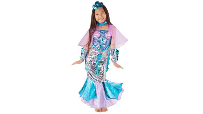 Make a splash in Teetot’s sparkly mermaid costume! For less than $40, you’ll receive a metallic mermaid dress complete with a ruffled fishtail, mermaid cape, tiara and wand. This children’s costume is available online only, so make sure to shop your preferred size before it’s sold out.